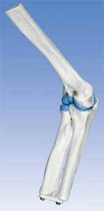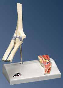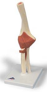 The elbow is one of the most commonly injured joints in the arm. It is a hinge joint that works to allow the arm to flex up and straighten, but only to a specific point. Unlike a ball joint such as a hip joint or ankle, a hinge joint is only designed to move in one direction, basically open or closed. With hyper or over extension, lateral movement or pulling on the joint severe injury can and will occur. Having a human elbow joint model in your emergency room or patient consult room can help in explaining just what type of injury has occurred and what needs to be done to correct the problem.